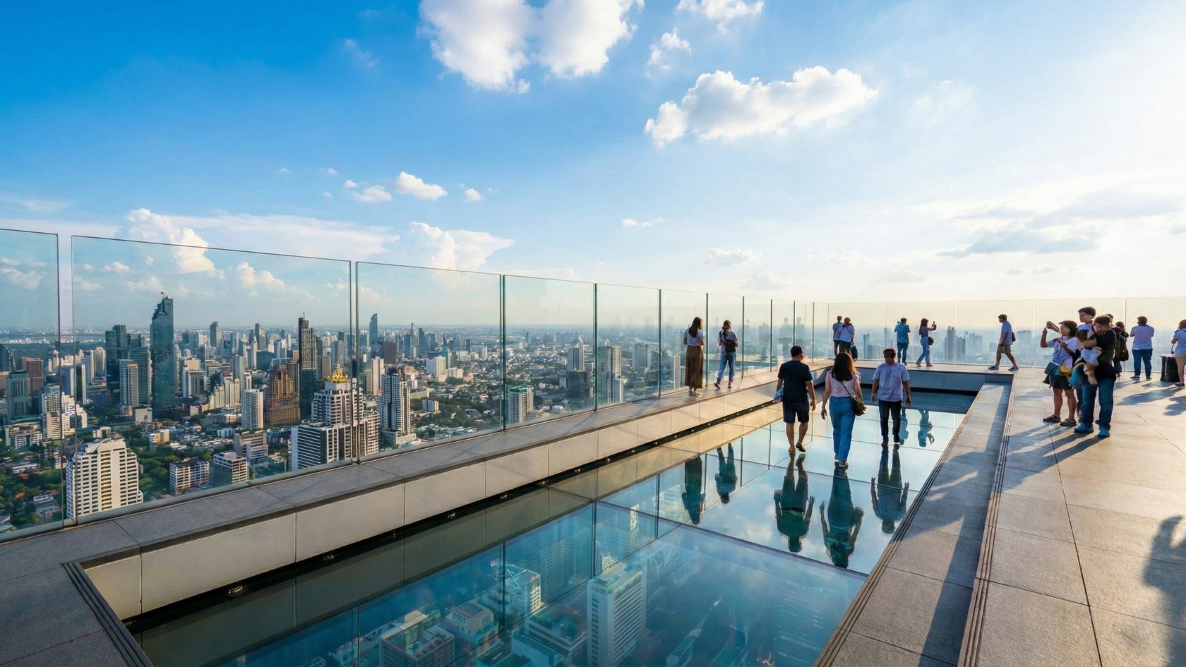 ברוכים הבאים לנקודת השיא של בנגקוק – מילולית ומטאפורית. ה-Mahanakhon Skywalk, הממוקם בראש אחד המבנים האייקוניים ביותר באסיה, הוא הרבה יותר מעוד עמדת תצפית; זוהי חוויה אורבנית מתוחכמת המציעה מבט אינטליגנטי ופנורמי של 360 מעלות על המטרופולין הפועם. המקום משלב בין ריגוש ארכיטקטוני לאירוח בסטנדרט בינלאומי גבוה, ומספק פלטפורמה מושלמת לכל הרכב חברתי. עבור משפחות, הביקור בסקייווק הוא שיעור גיאוגרפיה חי ומרתק, המוגש בעטיפה של הרפתקה בלתי נשכחת. החוויה מתחילה כבר במעלית המולטימדיה המהירה בתאילנד, שמכניסה את כולם לאווירה. בגובה, העמידה על "מגש הזכוכית" (The Glass Tray) בגובה 314 מטרים מספקת ריגוש בטוח ומבוקר שילדים (והורים אמיצים) ידברו עליו עוד שנים רבות. זוהי הזדמנות נדירה לראות את העיר העצומה נפרשת כמו מפה אינטראקטיבית מתחת לרגליכם, חוויה המגשרת בין דורות דרך תחושת פליאה משותפת. לקבוצות חברים או לזוגות המחפשים חוויה שהיא וואו, זהו ללא ספק המיקום הנחשק ביותר בבנגקוק. השילוב בין האדרנלין של ההליכה על הזכוכית לבין האלגנטיות של הבר החיצוני (Rooftop Bar) הגבוה ביותר בתאילנד, מייצר אווירה קוסמופוליטית משוחררת. זהו המקום האידיאלי להגיע אליו בשעת השקיעה ("Golden Hour"), להרים כוסית קוקטייל מעוצב מול נוף עוצר נשימה, ולייצר את התמונות שיהפכו את הפיד שלכם ליצירת אמנות. החוויה כאן היא מתוחכמת, פוטוגנית ומלאה בסטייל.